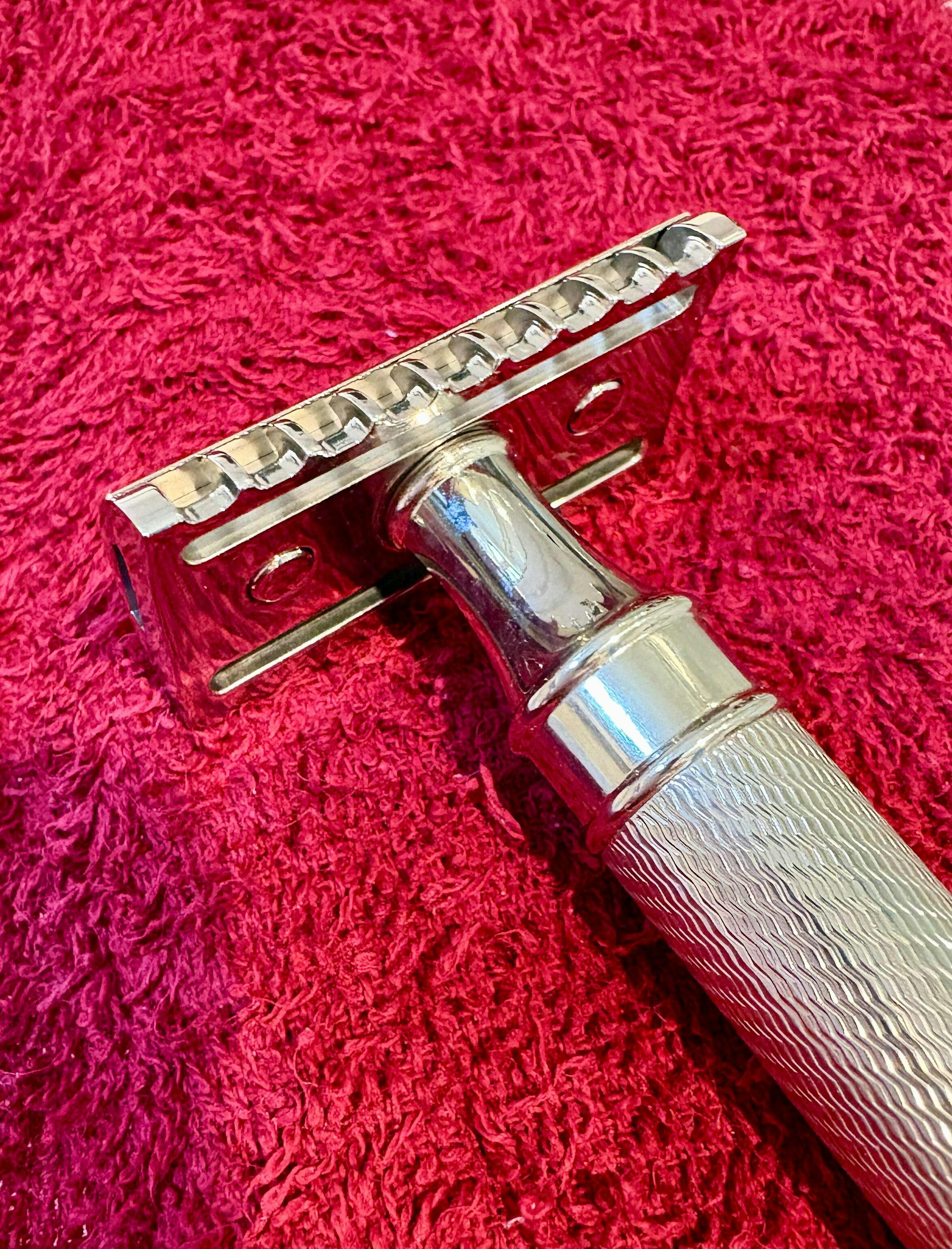 The safety razor with open tooth comb was developed specially for practised wet shavers. Due to the principle of its construction, which features a special blade angle, the model allows a vigorous, very direct shaving technique.